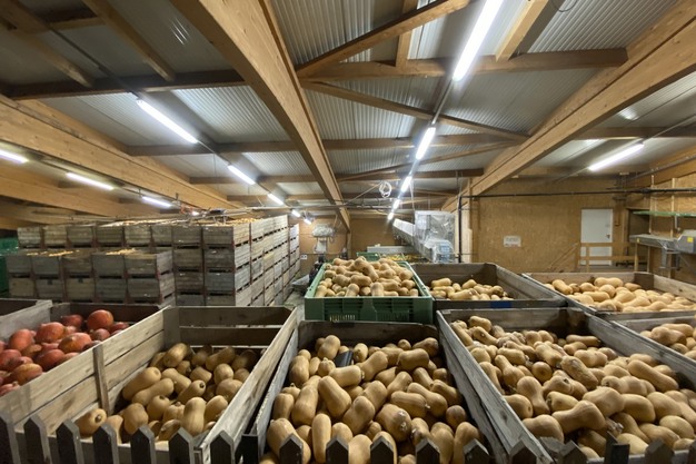 La explotación está especializada en el cultivo de calabazas convencionales, principalmente Hokkaido y Butternut. También se cultivan variedades Patissan, Espagueti y Halloween. Según Keil, la temporada ha empezado especialmente bien en términos de comercialización. "La demanda de nuestras calabazas tempranas es ya sorprendentemente alta. Esto nos demuestra que las calabazas ya no son solo una hortaliza de otoño. Este cambio también se ve impulsado por nuevos conceptos en el sector de la restauración, como la calabaza frita o rellena. Nuestro objetivo también es impulsar esta tendencia. Por ello, ya fabricamos productos precocinados a base de calabaza, como calabazas partidas por la mitad y sin pepitas y sucedáneos de la carne con calabaza y guisantes".