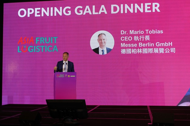 El Dr. Mario Tobías, CEO de Messe Berlin, la organización responsable de Asia Fruit Logistica, pronunció el discurso inaugural, marcando el inicio oficial del evento. En su intervención, destacó la importancia del mercado asiático en el comercio global de frutas y hortalizas y subrayó el papel estratégico de Hong Kong como puerta de entrada a Asia. Además, el Dr. Tobías enfatizó el compromiso del evento con el fomento de relaciones comerciales internacionales y la presentación de los últimos avances en tecnología de productos frescos, embalaje y logística.