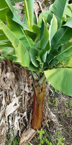 El patrón de crecimiento erguido de una planta infectada por BBTV (foto: Dr. Tendekai Mahlanza).