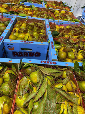 La firma holandesa Marni Fruit ha empezado ya a recibir las primeras mandarinas con hoja españolas de la variedad Satsuma. "Todavía están muy verdes, pero tienen mucho éxito, sobre todo entre grupos étnicos afines", dice Erik-Jan Thur, de Marni Fruit. "Los proveedores indican que se espera suficiente fruta, solo que predominarán los calibres pequeños y es muy posible que escaseen los grandes. La oferta de mandarinas de ultramar se compone principalmente de Nadorcott sudafricanas. No hay demasiadas disponibles y los precios oscilan entre 13 y 16 euros. Esta semana también nos están llegando los primeros limones españoles. De naranjas españolas también se espera una cantidad razonable, pero en este caso también predominarán los calibres pequeños".