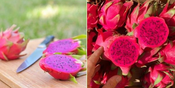 "La fruta del dragón pertenece a la familia de los cactus. Los conquistadores españoles la descubrieron en Centroamérica y las Antillas y la trajeron a España en el siglo XVI. Los habitantes de Centroamérica la llamaban pitahaya, que significa fruta con escamas. Fue a partir de 1963 cuando se la llamó fruta del dragón debido a su apariencia. Existen unas 300 variedades de pitahaya, número que sigue creciendo cada día por su enorme capacidad de hibridación. Si bien esto, el mercado suele contemplar habitualmente tres tipos teniendo en cuenta su apariencia externa e interna respectivamente, es decir, roja-roja, roja-blanca y amarilla-blanca".