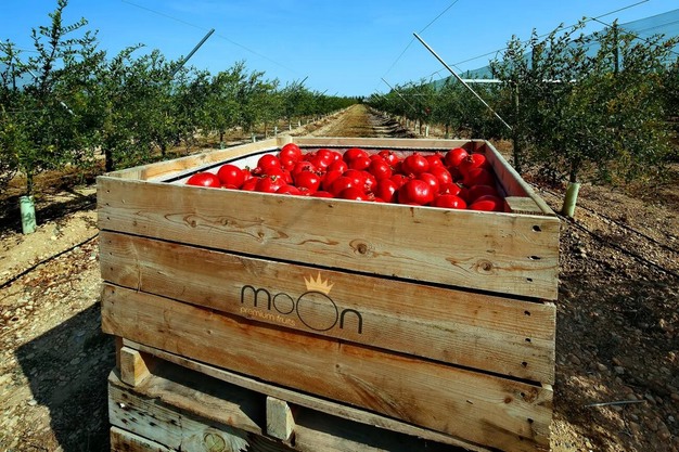 En Alcolea de Cinca, Huesca, se encuentra una de las plantaciones de granadas situadas más al norte de España. "El estar fuera de la zona tradicional de cultivo de la granada nos hace empezar unos 10-15 días después que en la zona de Levante, a finales de agosto, con lo que también acabamos la campaña un par de semanas después aprovechando esa ventana de comercialización", explica Manuel Fortón, gerente de Moon Premium Fruits. "Además, por esa diferencia en la fecha de cosecha, cuando otras producciones empiezan a bajar de calibre, nosotros seguimos ofreciendo al mercado fruta con el calibre grande que el mercado demanda".