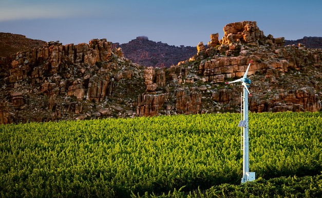 En los alrededores de Augrabies, en el Cabo Septentrional, una empresa dedicada al cultivo de uvas y cítricos acciona sus ventiladores para heladas a partir de su campo solar de 1.125 kW, con una capacidad de batería de 1.062 kW. Hugo observa que, en todo el mundo, lo normal son entre 50 y 200 horas de uso del ventilador, pero en el Cabo Septentrional, a orillas del río Orange, donde a veces se hielan campos enteros de cítricos en pleno invierno, sus clientes mantienen las aspas girando hasta 600 horas al año.