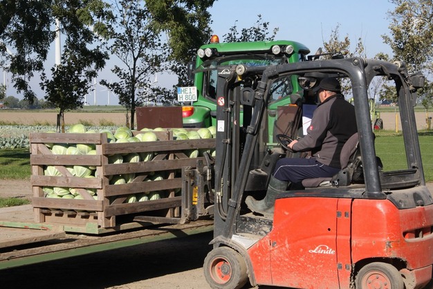 Dithmarschen es la mayor región productora de coles de Europa, con unas 3.200 hectáreas dedicadas cada año a la col blanca, lombarda y rizada. Según las estadísticas, cada año se cosechan aquí unos 90 millones de coles. Aunque la superficie cultivada se ha mantenido estable en los últimos años, el número de productores ha disminuido, entre otras cosas por la falta de trabajadores para el cultivo de la col, que es muy exigente en mano de obra", explica Matthias Bartels. "Hace unos años, experimentamos con un robot recolector autopropulsado y almacenamos la col recolectada mecánicamente. Aunque esto funciona bien para los productos destinados a la industria, es mucho más complicado para el producto destinado a la venta en fresco".