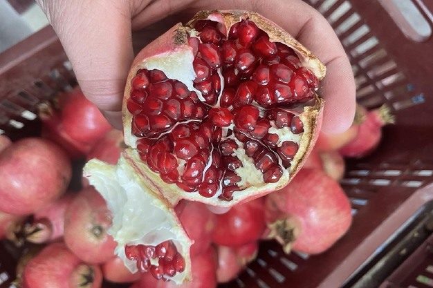 Aunque la campaña de la granada en Argólida no progresa de forma muy satisfactoria, la "artillería pesada" del sector regional de la granada aún no ha entrado en escena. Se trata de Ermioni, una variedad especial, DOP, que debe su nombre a la zona específica donde se cultiva. La cosecha de Ermioni comienza a finales de octubre, la maduración de los frutos hasta ahora parece desarrollarse con normalidad, pero según Gkaletsi "el proceso de cultivo ha sido muy exigente este año". Y continúa: "No vemos frutos agrietados y la calidad general parece muy buena, pero esto ha significado que hemos tenido que ser extremadamente diligentes, trabajando en estrecha colaboración con nuestros agrónomos. Los últimos meses, muy calurosos, hicieron que la planificación del riego fuera muy exigente. Las granadas, y especialmente esta variedad excepcional, necesitan un manejo esmerado. Hay que ser muy prudente en cuanto al suministro de agua, tanto en volumen como en el momento oportuno", subraya la empresaria griega, y añade que "parece que el rendimiento se situará en los niveles del año pasado, lo que equivaldría a unas 1,2 toneladas por hectárea".