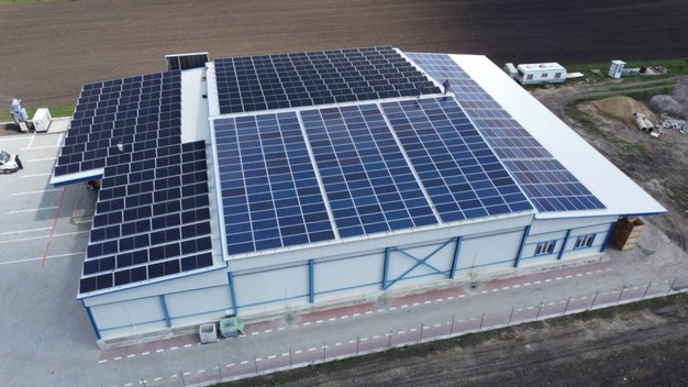 Paneles solares en el tejado de la estación de envasado de PDG Fruct.