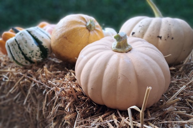 Hokkaido es la principal, con algo más de 40 hectáreas. Jeroen cultiva calabaza Butternut en la mitad de la superficie restante y, en aproximadamente una hectárea cada una, diversos cultivos más pequeños como calabazas espagueti, Kabocha, calabazas grises, tres variedades de "calabazas de microondas" (pequeños frutos de hasta 10 cm de diámetro que se pueden preparar perfectamente en el microondas) y calabazas Turbante. Aunque decorativas, estas calabazas son totalmente comestibles.