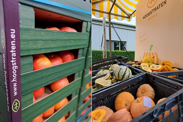 Jeroen de Ridder, agricultor afiliado a Coöperatie Hoogstraten, tiene un largo recorrido en el cultivo de calabazas, que comenzó cuando, con ocho años, ya cultivaba casi 100 tipos de calabazas. Hoy, Jeroen cultiva unas 15 variedades en una impresionante superficie de 70 hectáreas en Bélgica.