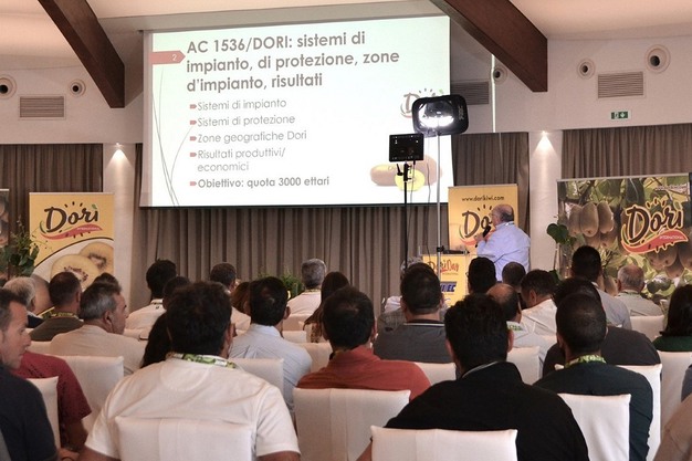 El acto, coordinado y televisado por Agrilinea di Sauro Angelini, fue inaugurado por Giampaolo Dal Pane, presidente de Dorì International, quien, junto con los profesores Andrea Ravaioli y Giorgio Miclet, de la Universidad de Bolonia y la Universidad de Udine respectivamente, repasó la historia de esta variedad, que en la actualidad cuenta con más de 900 hectáreas plantadas en todo el mundo.