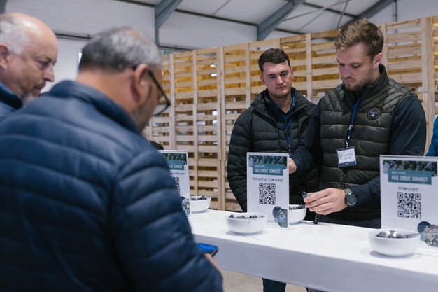 El acto atrajo a productores, exportadores y representantes del sector de Sudáfrica, Namibia y países tan lejanos como Kenia. Los asistentes participaron en degustaciones de berries, entre ellas las populares Sekoya Pop® FCM14-052, Sekoya Beauty® FCM12-097 y AzraBlue™ FCM14-031, que está dando buenos resultados en todo el sur de África. Fall Creek también ha presentado nuevas selecciones, FCM14-057 y FCM17-132, que están dando resultados prometedores en Zimbabue y Namibia.