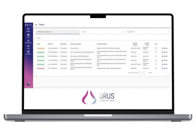"Fue, de hecho, mi experiencia como exportador de frutas y hortalizas desde Almería lo que me llevó a crear una aplicación para agilizar la comunicación entre las empresas logísticas y sus clientes, y para facilitar que los exportadores puedan saber dónde está su mercancía en cada momento", explica Juanjo Barrionuevo. "Así nació la plataforma Orus Logistics, que desde septiembre 2024 hemos lanzado al mercado".