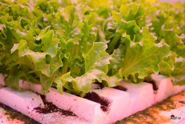 En Enkhuizen, cerca de la sede central de Enza Zaden, los visitantes tuvieron ocasión de ver el cultivo hidropónico en el flamante invernadero hidropónico de 1.400 m². En este invernadero se han realizado más de 67 ensayos este año. Enza mostró allí nuevas variedades adecuadas para el cultivo de alta densidad, con posibilidades para la cosecha tanto de lechuga de hoja suelta (12-15 cm) como de lechuga arrepollada.