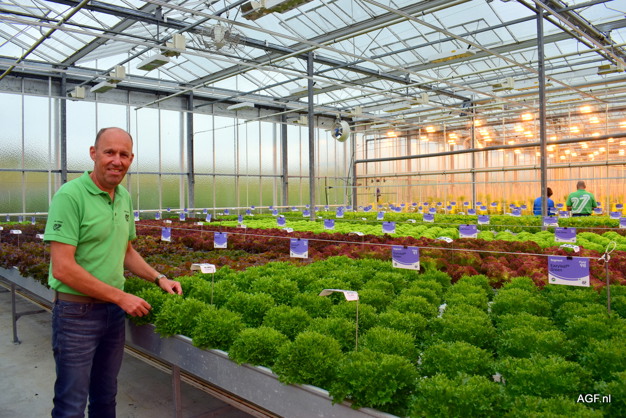 Peter Conijn, obtentor principal de Hydrosla, junto a las lechugas.