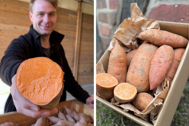 En 2016, Strampe probó suerte con el cultivo de batata: tras el éxito de las primeras pruebas, la capacidad de cultivo fue aumentando ligeramente cada año, y ahora cultiva casi 10 hectáreas de este tubérculo. El objetivo es mantener esta capacidad por el momento, ya que falta espacio de conservación para seguir creciendo. "Nos hemos dado cuenta de que la demanda ha aumentado gradualmente a lo largo de los años. Por lo general, ofrecemos nuestras batatas hasta junio del año siguiente y volvemos a ver un aumento significativo de la demanda sobre todo a partir de la primavera, es decir, marzo-abril. Diciembre es el peor mes desde el punto de vista de la comercialización, ya que la mayoría de los platos navideños no tienen nada que ver con las batatas".