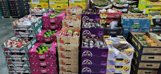 El almacén de Biofruct Exim cuenta con amplio surtido de productos españoles, como cítricos, kakis, hortalizas de Almería, mangos y aguacates. Por ahora, la mayoría se importa a través de distribuidores holandeses. "Pero estamos considerando importar directamente de España en el futuro".