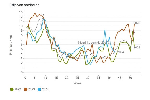 Consulta aquí todos los precios medios de la VBT para la semana 37. Todos los datos y los gráficos están disponibles en la página de estadísticas agrícolas del Ministerio de Agricultura y Pesca de Flandes.