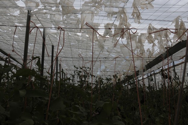 "Se calcula que unas 90 hectáreas de invernaderos han sucumbido al impacto del granizo. Para los horticultores, por supuesto, es un golpe importante, aunque hablamos solo de un pequeño porcentaje de las aproximadamente 33.000 hectáreas de cultivo que hay en Almería. Además, los daños afectan casi siempre a invernaderos planos de los antiguos. Otros invernaderos, con una estructura de cubierta inclinada, pueden soportar mejor el peso. Hay bastantes invernaderos en los que el granizo ha atravesado el plástico, sobre todo en aquellos en los que el plástico estaba ya para cambiar. En los invernaderos con un plástico más nuevo se ven menos agujeros y más pequeños. El granizo, con piedras del tamaño de pelotas de ping-pong, también ha destrozado muchas ventanillas de coches y paneles solares. Eso sí, en la zona afectada también he visto muchos invernaderos a los que no les ha pasado absolutamente nada", relata Jan.