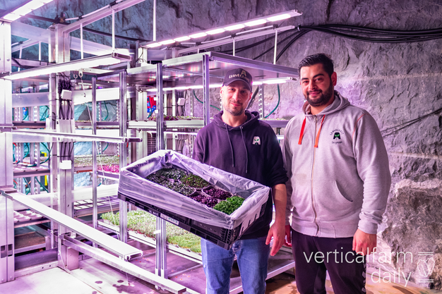 "El aislamiento natural de la cueva mantiene bajos los costes energéticos, ya que solo se necesitan luces led para el crecimiento de las plantas y para conseguir una temperatura adecuada. Por tanto, nos beneficiamos de unas temperaturas estables durante todo el año, lo que nos permite alcanzar la eficiencia energética", afirma Rafik Halabi, cofundador de Gruvegrønt, unas instalaciones de agricultura vertical situadas en el interior de un complejo de cuevas, a las afueras de Oslo. Rafik y Peyman Karim Afshar, el otro cofundador, ofrecen verduras frescas, microgreens y, en breve, setas, y están dispuestos a ampliar la cartera de productos dada la creciente demanda.