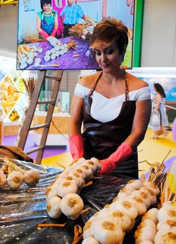 "Como productores, estamos especializados en el ajo trenzado y en racimos, dos formatos muy estéticos que aumentan la durabilidad y la frescura de las cabezas de ajo frente al ajo cortado. Y personalmente, soy artesana del ajo y diseño cualquier tipo de ornamentación con él".
