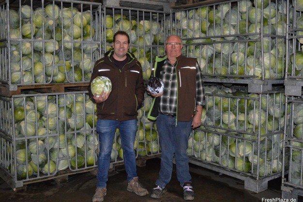 Hermann-Josef y su padre Hans-Wilhelm en el almacén de coles. La empresa familiar suministra a retailers y mayoristas, así como a la industria de transformación.