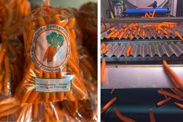 A pesar de la humedad, la cosecha de zanahorias de este año en Renania ha tenido un buen comienzo. "La primavera también fue muy húmeda en nuestra región, lo que contribuyó a dificultar las condiciones del campo, especialmente para los cultivos tempranos bajo mantas térmicas, que se siembran a mediados de abril y se cosechan a partir de mediados de julio. En términos de rendimiento, sin embargo, estamos satisfechos en general, tanto en lo que se refiere a las zanahorias tempranas como a las de conservación. Aunque no tendremos una cosecha récord como en la campaña 2021/22, yo diría que la cosecha de este año está ligeramente por encima de la media en una comparación plurianual", afirma Maximilian Coenen, productor de zanahorias con sede en Bedburg (Renania del Norte-Westfalia).