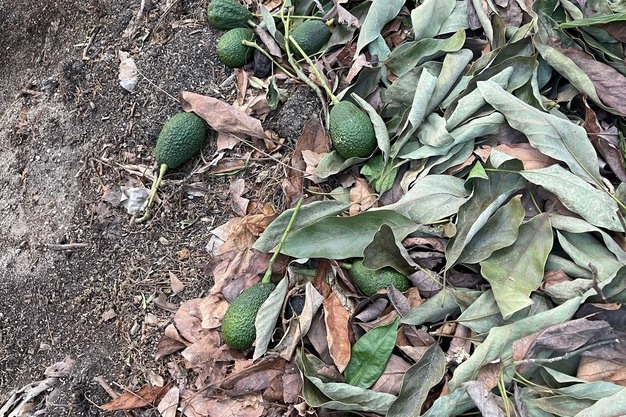 Los fuertes vientos provocaron la caída de los aguacates de los árboles.