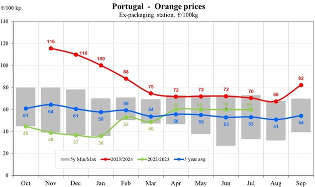 Aunque el precio medio de la UE ha bajado, persisten las variaciones regionales. En Grecia, los precios de las naranjas han aumentado un 30,18% con respecto a septiembre de 2023, alcanzando los 71,04 euros por 100 kg. Por el contrario, Portugal registró 82,24 euros por 100 kg, lo que supone una subida del 21,75%. Estas disparidades ponen de manifiesto la diversidad de condiciones y respuestas del mercado en los distintos Estados miembros.