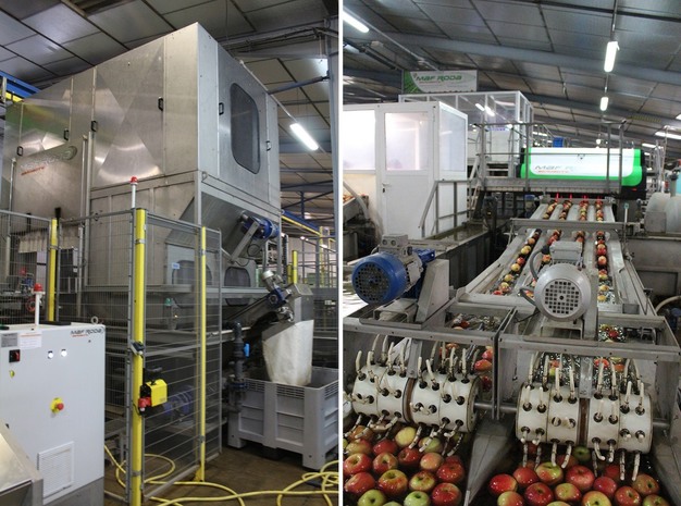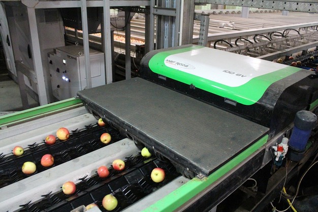 "Este sistema de precalibrado está diseñado para trabajar con palés de 120 x 120 y ofrece una capacidad de 33 a 38 palés por hora, según la variedad de manzana. Todo el equipo está operativo y listo para integrarse en su estación frutícola, lo que le permitirá mejorar su productividad".