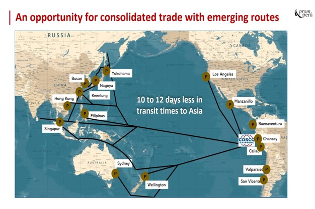 Además, el puerto está diseñado para adaptarse a las necesidades del mercado. La reducción en los tiempos de tránsito hacia Asia es uno de sus mayores logros. Según Guinand, "la ruta directa que ofrece Chancay reduce el tiempo de viaje en 10 días, pasando de 36 a solo 26 días. Esto beneficia especialmente a productos perecibles como frutas frescas, que ahora podrán llegar en mejores condiciones y a costos más competitivos".