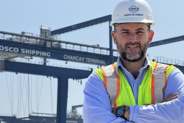 Alonso Guinand, gerente comercial de Cosco, en la obra de construcción de la Terminal Portuaria de Chancay.