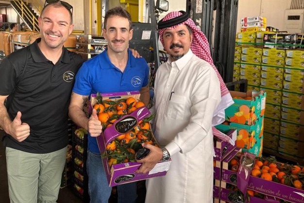 Manuel Baides y su compañero Lázaro Pérez están visitando Arabia Saudí para comprobar el estado de las primeras llegadas de kaki Rojo Brillante y clementina con hoja a los estantes de las principales cadenas en este país.