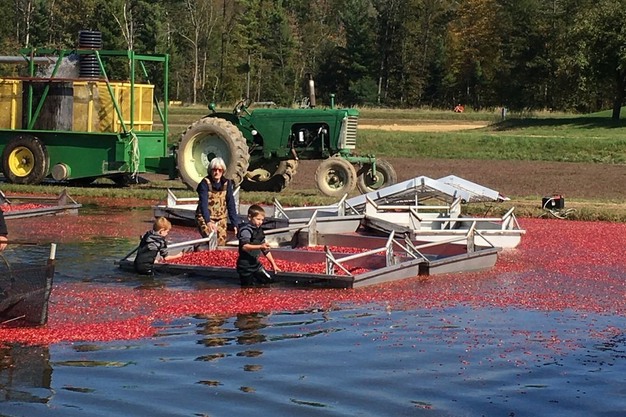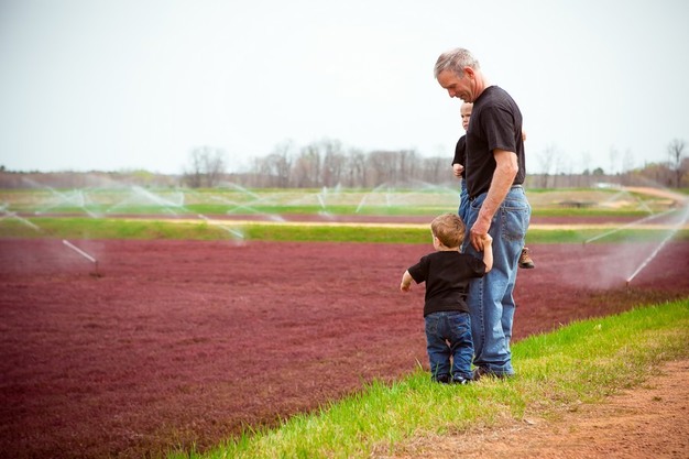 El fundador de Twin Lake Cranberry, Dan Tritz, padre de Kevin Tritz, enseña a sus nietos los entresijos del negocio del arándano.