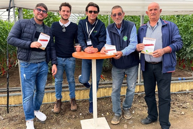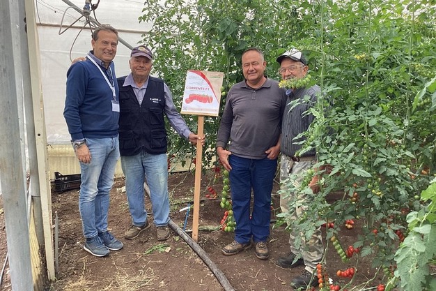 Entre las novedades presentadas figuraban tres variedades de tomate, entre ellas la cherry Gustavo F1, desarrollada para el ciclo de contraestación y lanzada al mercado en la campaña 2023/24; también estaban Corrente F1 y Romulus F1, cherry pera mini y datterino respectivamente. Estas dos últimas se presentaron en primicia.