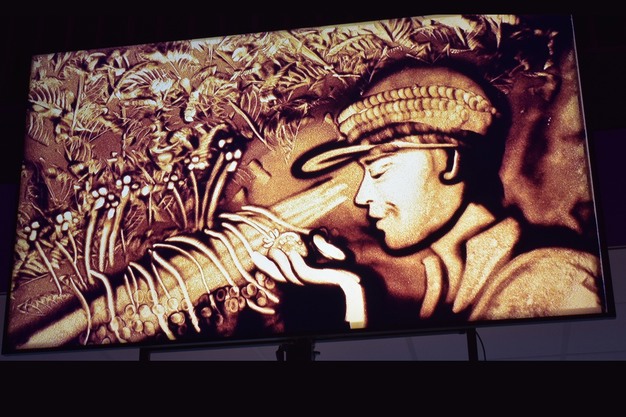 El artista Gert van de Vijver, que trabaja con arena, creó una historia visual.