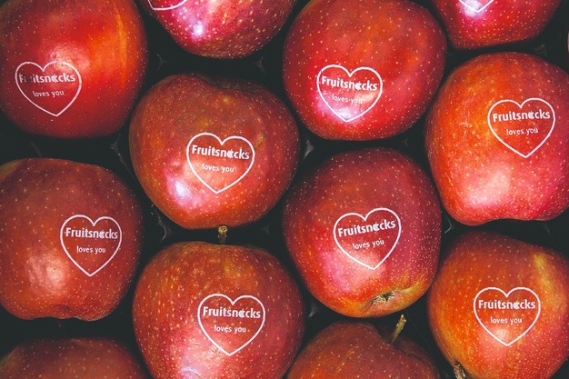 La impresión de logotipos en las manzanas lleva mucho trabajo. "Utilizamos pasta de almidón comestible para imprimir los logotipos, como se hace con la 'M' de los M&M. Este proceso garantiza un resultado llamativo, especialmente en las manzanas rojas", dice Roel. Logofruit produce hasta 4.000 manzanas al día y las entrega directamente a las empresas, incluidos el servicio y el transporte. "No genera grandes ventas, pero refuerza la fidelidad de los clientes".