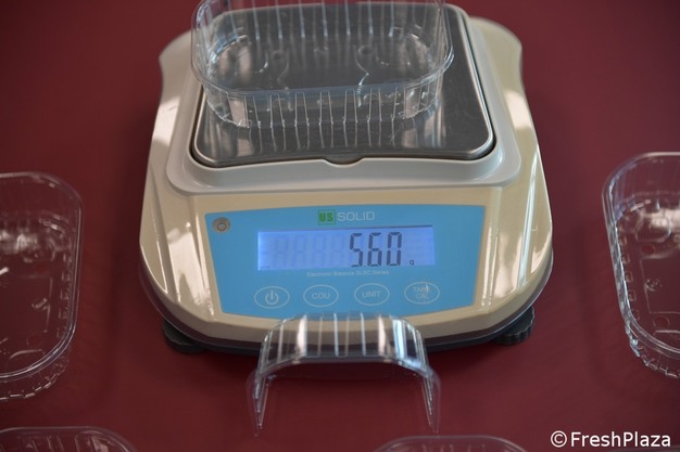 5,60 gramos, el peso de una tarrina de plástico (125 gramos de capacidad).