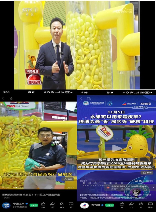 El proyecto Fruit to Leather debutó en la 6.ª CIIE, donde su innovador concepto medioambiental atrajo la atención de visitantes y medios de comunicación.
