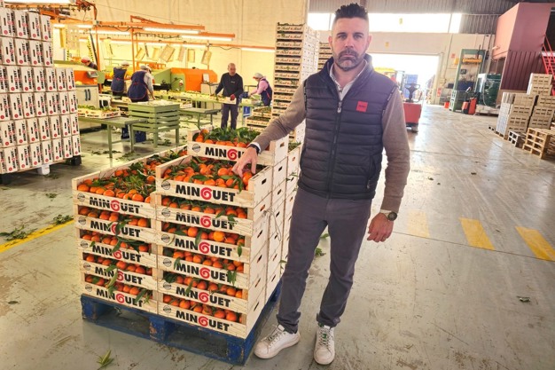 "A finales de diciembre terminamos con las últimas Clemenules y el 6 de enero hemos iniciado la comercialización de las primeras clementinas Sando con hoja, la cual viene con muy buenos calibres este año", cuenta Juan José Minguet, gerente de Frutas Minguet, ubicada en Xilxes, Castellón.