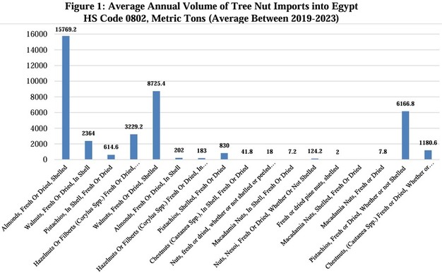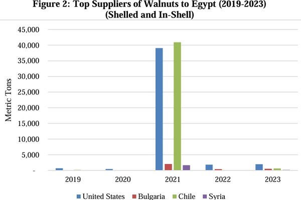 El consumo egipcio de nueces (y otros frutos secos) se disparó en 2021, en medio de la pandemia de coronavirus, ya que un mayor segmento de la población consumía frutos secos por su valor nutritivo. Sin embargo, los niveles de consumo egipcio de nueces (y otros frutos secos) volvieron a los niveles anteriores a la pandemia en 2022, ya que el consumo de frutos secos disminuyó debido a su elevado precio. Desde 2022, Egipto ha sufrido un sinfín de problemas económicos (principalmente, una grave escasez de divisas) que han puesto a prueba las cadenas de suministro de productos básicos.