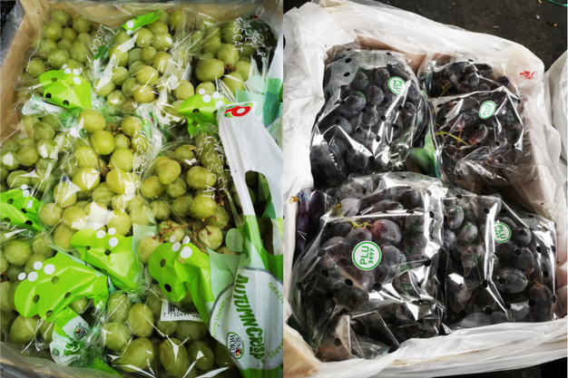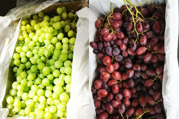 Izquierda: Sweet Globe chilenas. Derecha: uvas rojas australianas sin pepitas.