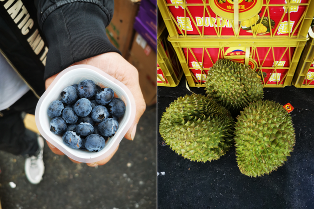 Izquierda: arándanos de Yunnan. Derecha: durián Kanyao de Vietnam.