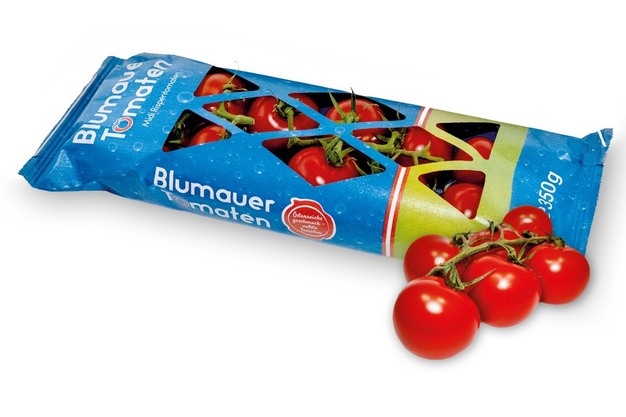 La solución 100% reciclable de Ulrich se utiliza principalmente para envasar tomates Blumauer.