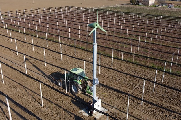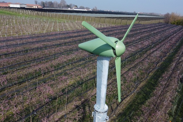 Los ventiladores eléctricos producidos por la empresa toscana Aria srl son una solución contra las heladas tardías, pero también contra el ruido excesivo que a veces crea molestias en los alrededores de las plantaciones. "Una de nuestras últimas innovaciones, que está despertando interés, es la versión móvil Antibrina 3-22-C instalada en un carro agrícola. Hemos diseñado el único ventilador antiheladas móvil de 10 metros de altura con las mismas prestaciones en términos de cobertura que los ventiladores fijos. El diseño especial también nos ha permitido crear una máquina que, a pesar de su altura, es muy compacta y, una vez cerrada, se puede desplazar fácilmente entre las hileras", explica Manuele Morelli, propietario de Aria e ingeniero de diseño.