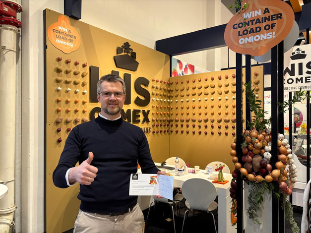 Durante la Fruit Logistica, Wiscomex organizó una llamativa promoción ferial. El exportador holandés de cebollas, patatas y ajos ofreció a todos los importadores extranjeros de cebollas que visitaran su stand la posibilidad de ganar un contenedor gratuito de cebollas amarillas.