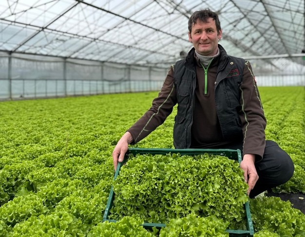 Las primeras campañas con lechuga de invernadero tendrán lugar entre la semana 10 y la 11. La ventana de comercialización de las lechugas de invernadero se centra a finales de febrero y marzo hasta el inicio de la cosecha a campo abierto en el Palatinado y en la llanura de Filder. En la imagen: el horticultor Thomas Huber.