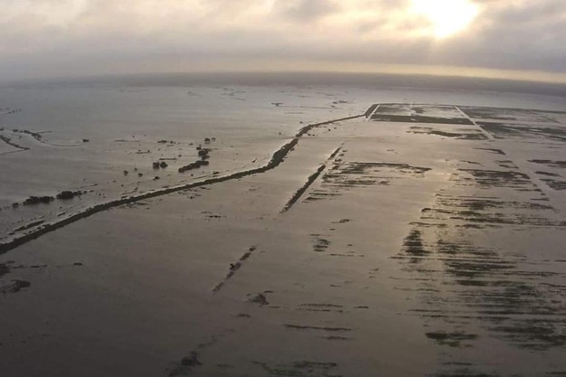 Hace exactamente dos años: un campo de caña de azúcar inundado en Mozambique tras el paso del ciclón tropical Freddy, la tormenta tropical más longeva de la que se tiene constancia. El funcionamiento del Servicio Meteorológico de Sudáfrica también afecta a millones de personas de los países vecinos.