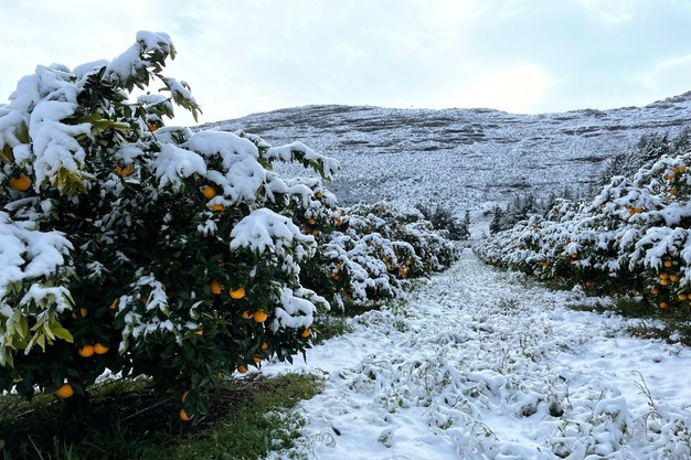 Un campo de cítricos de Cabo Occidental bajo un manto de nieve invernal (foto utilizada solo a título ilustrativo).