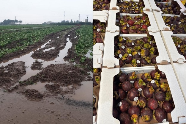 Izquierda: Las lluvias afectan al cultivo de frutas y hortalizas en amplias zonas de España.