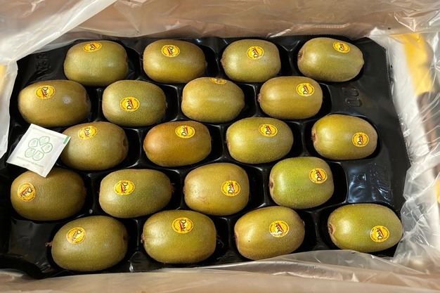 Dentro de diez o catorce días les seguirán los kiwis rojos. Los primeros volúmenes comerciales se enviaron el año pasado por vía marítima y aérea. Este año los volúmenes han crecido y la fruta saldrá sobre todo por barco, y se completarán los envíos con transporte aéreo. "Estamos muy entusiasmados con nuestros kiwis rojos", afirma el director técnico. "Este año lo comercializamos como kiwi rojo, pero a partir del próximo estará disponible bajo la marca Kiupi. La variedad Kiupi es famosa por su mayor tamaño y su mejor conservación".