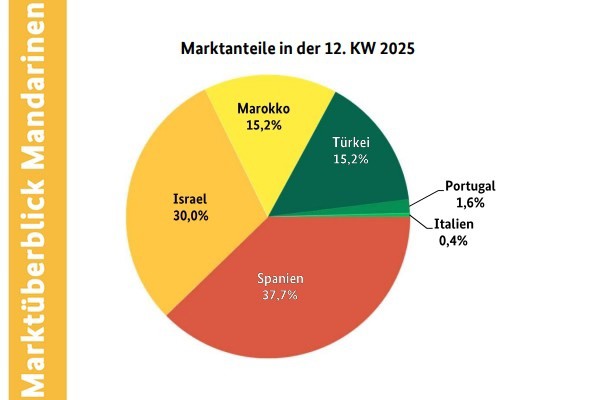 La temporada de mandarinas estaba llegando a su fin en la semana 12, así que la disponibilidad, evidentemente, era escasa. La presencia de las Nadorcott, Tango y Orri españolas era notablemente limitada. La fruta se ofrecía en distintos tamaños de envase y también se podía adquirir en malla. También disminuyó la importancia de la Orri israelí de alta calidad. Según BLE, la Nadorcott de Marruecos y la Murcott de Turquía completaban la oferta.